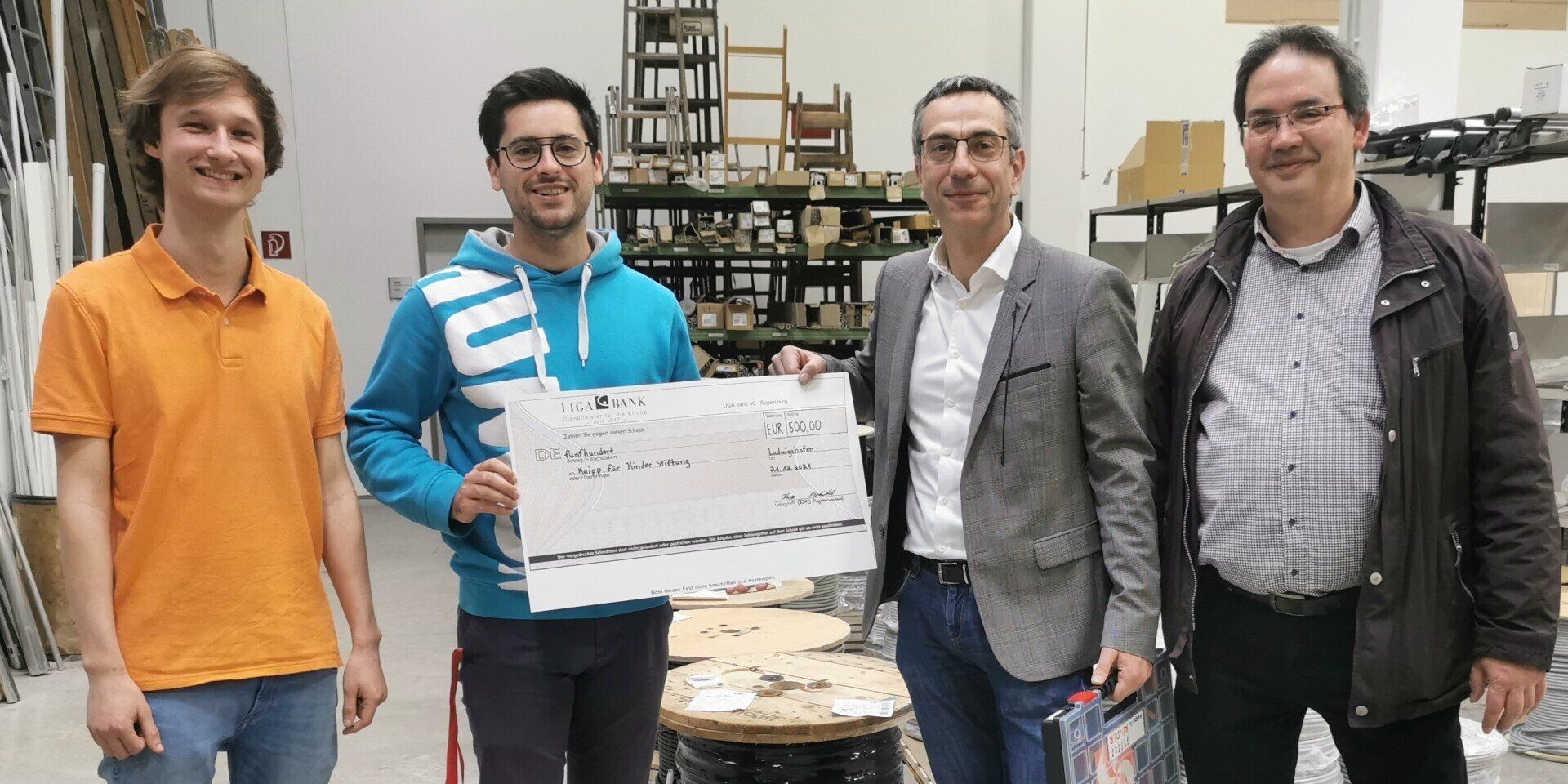 v. l. n. r. Pascal Schönlaub, Philipp Kapp, Tim Arnheiter und Udo Neufeld bei der Spendenübergabe in Ludwigshafen am Rhein