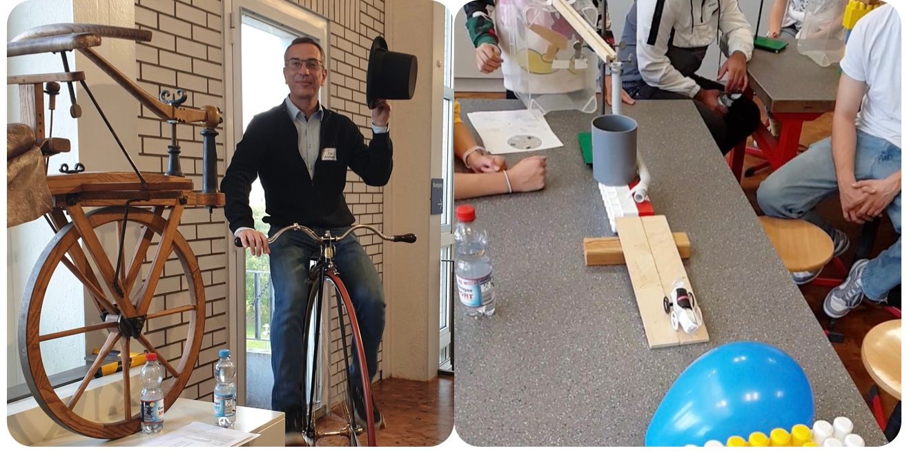 Eindrücke aus dem TECHNOSEUM - Exponate zur Geschichte des Fahrrads und Momentaufnahme des Workshops "Kettenreaktion"